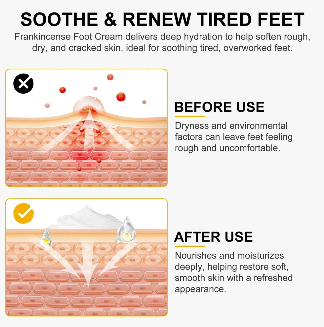 Revitalize tired, dry feet with this deeply soothing and fast-absorbing Frankincense Foot Cream. Infused with peppermint for instant cooling relief, frankincense for anti-inflammatory repair, and chamomile for skin renewal, this formula transforms rough, stressed feet into soft, hydrated “baby feet.”