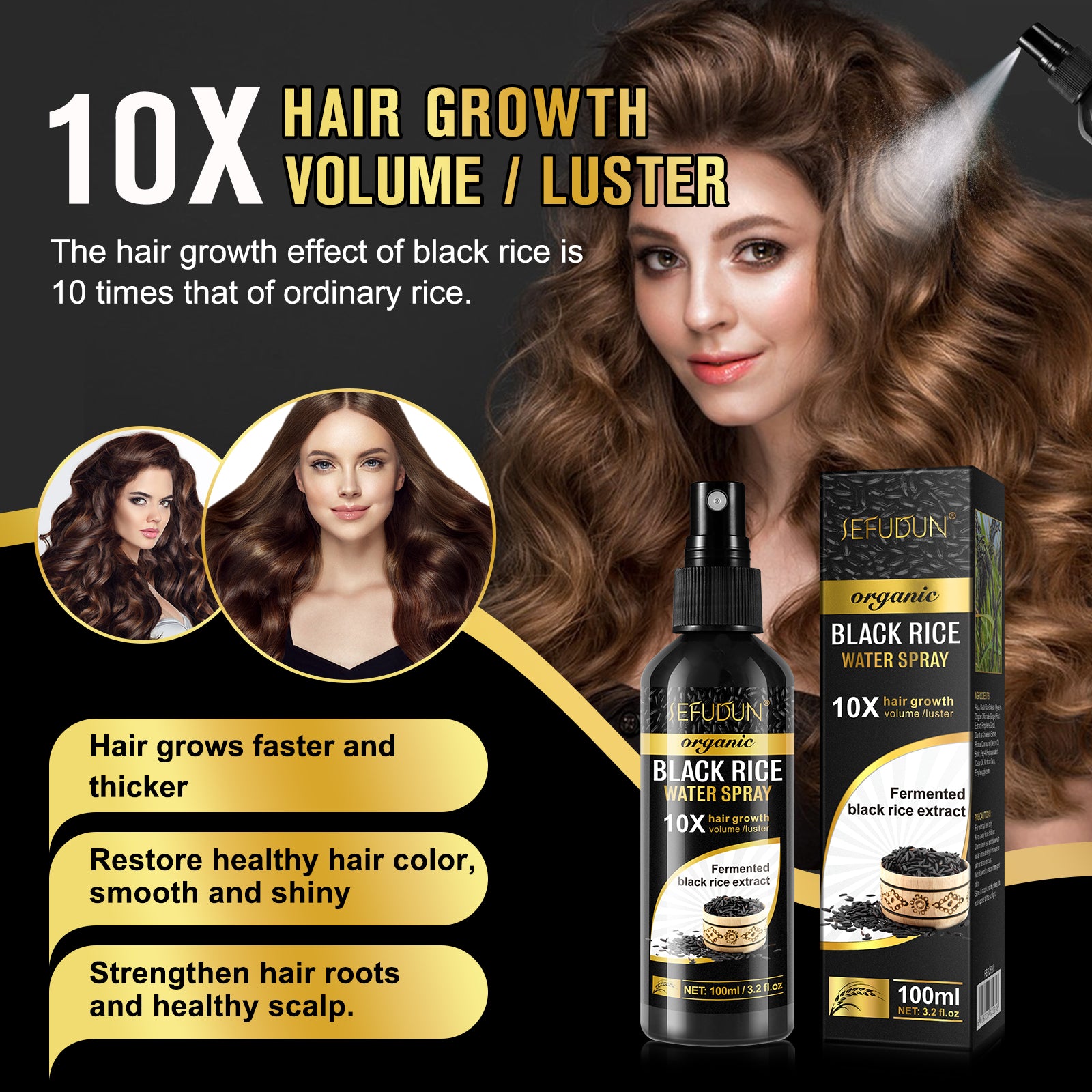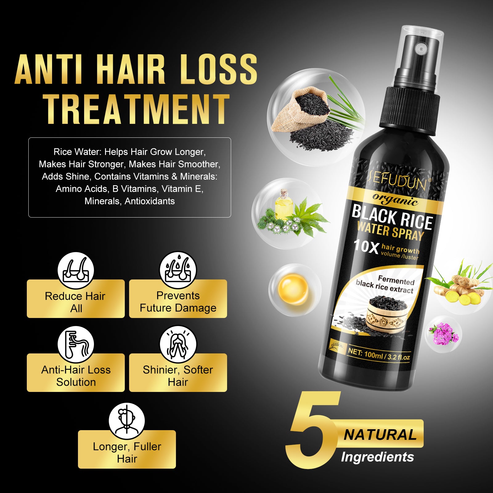 Hair Growth and Strengthen Black Rice Water Mist was created with a unique formula that blends proven natural ingredients together to deliver the maximum strength hair growth treatment in the class.